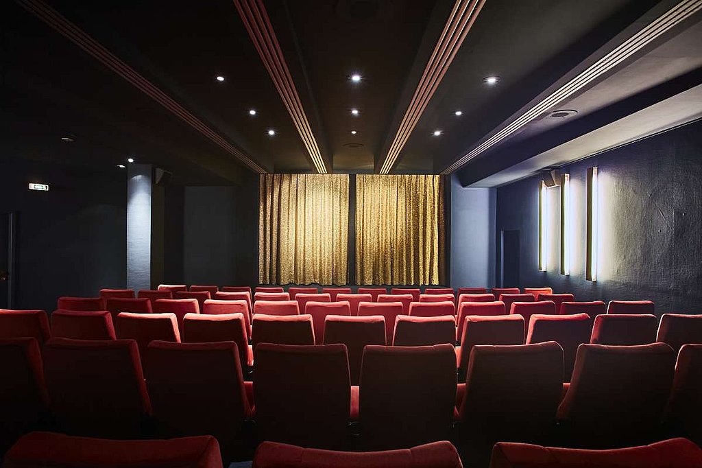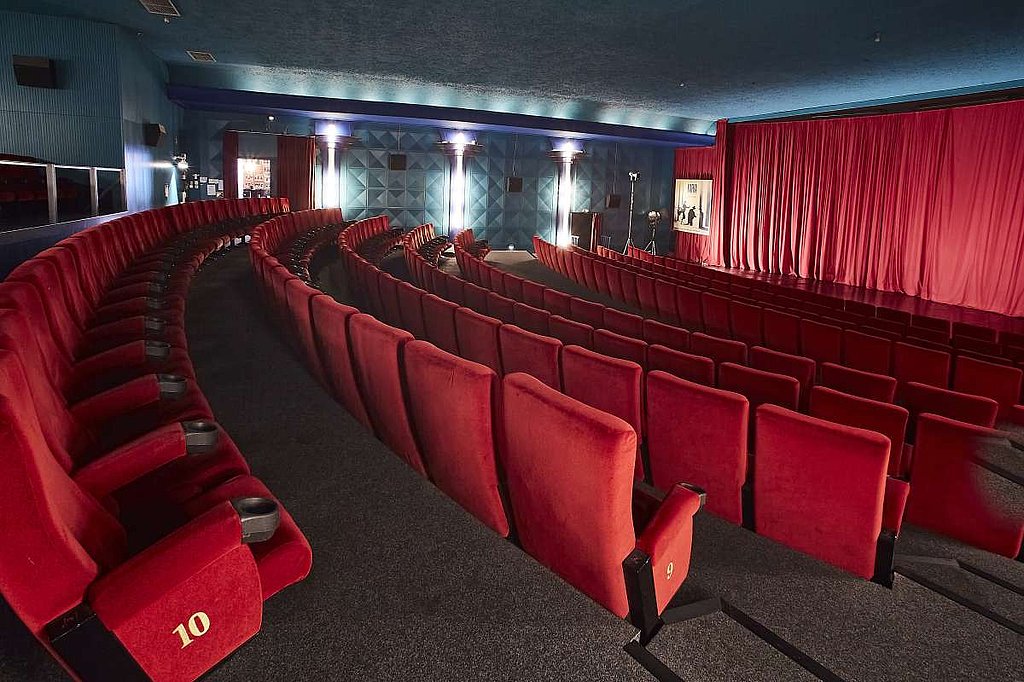 Der große Saal mit 258 roten Samtsesseln bietet sehr viel Beinfreiheit, eine schöne Aufteilung des steil nach oben ansteigenden Sitzbereiches sowie eine große Bühne vor der fast 90 qm großen Leinwand.